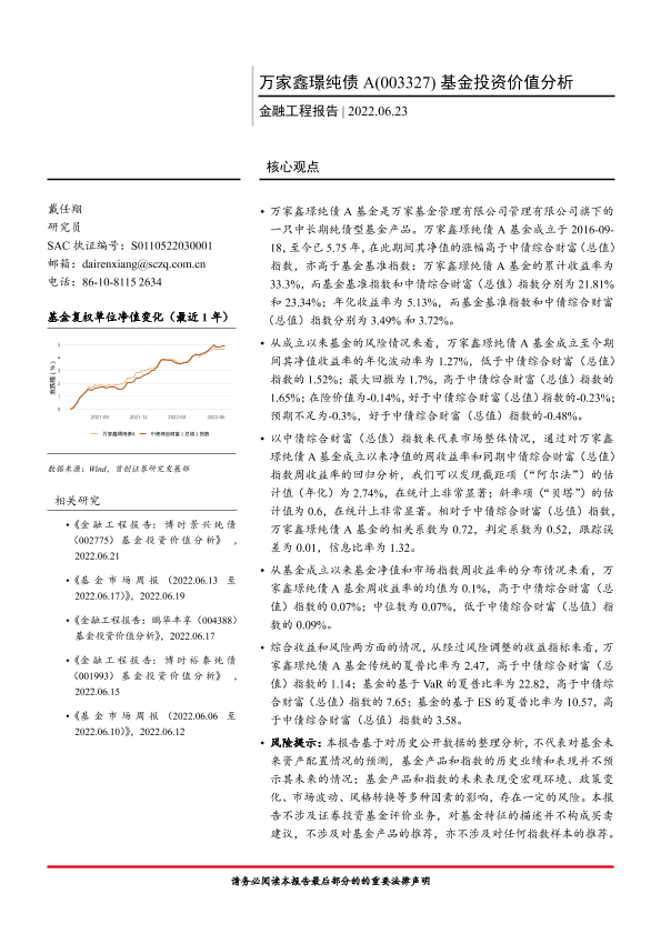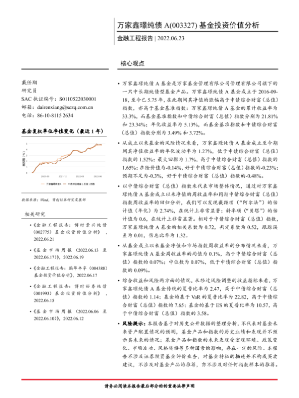 【首创证券】【20220623】金融工程报告:万家鑫璟纯债A(003327)基金投资价值分析-16页