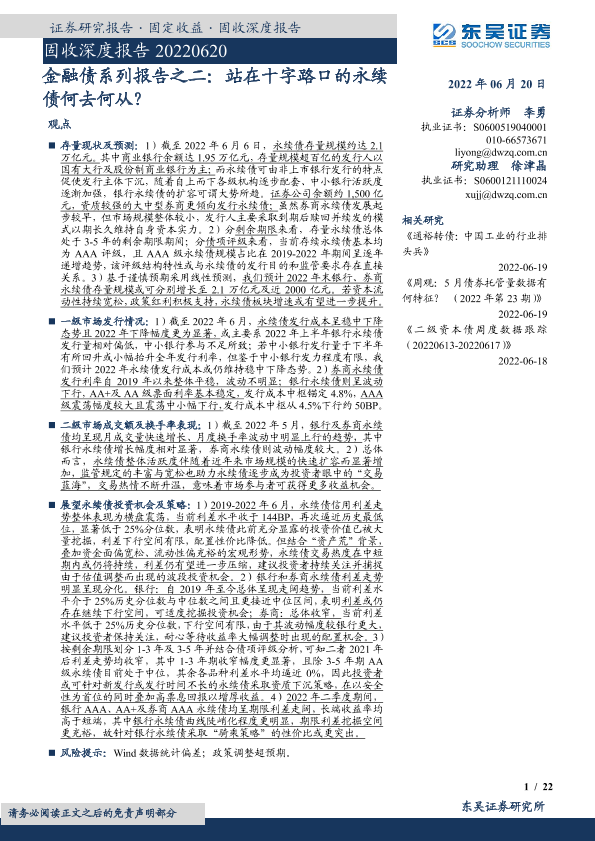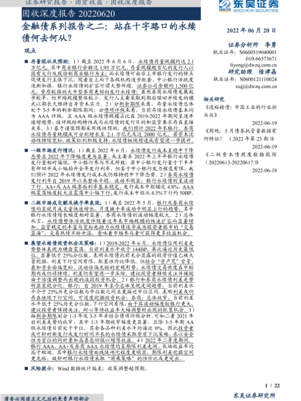 【东吴证券】【20220620】金融债系列报告之二:站在十字路口的永续债何去何从?-22页