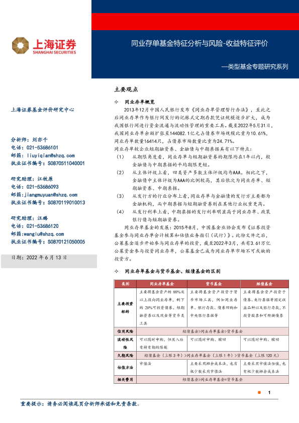 【上海证券】【20220613】类型基金专题研究系列:同业存单基金特征分析与风险_收益特征评价-22页