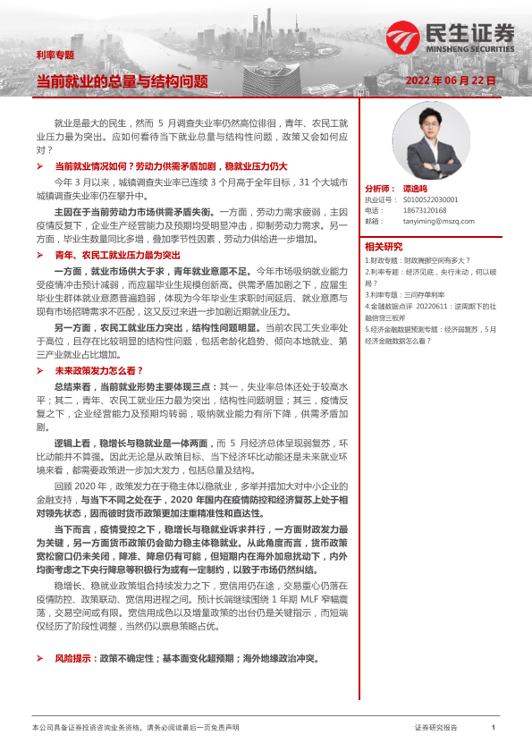【民生证券】【20220622】当前就业的总量与结构问题-22页