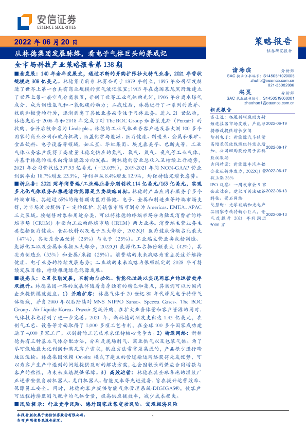 【安信证券】【20220620】全市场科技产业策略报告第138期:从林德集团发展脉络,看电子气体巨头的养成记-45页