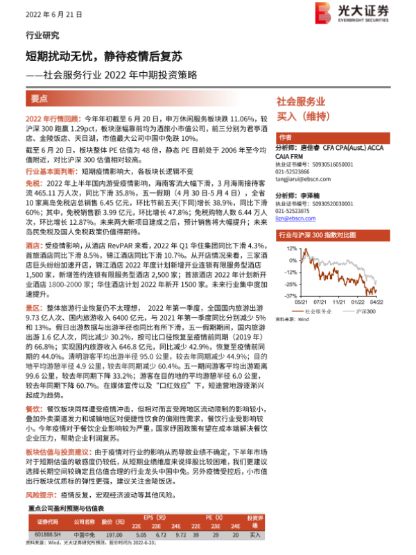 【光大证券】【20220621】社会服务行业2022年中期投资策略:短期扰动无忧,静待疫情后复苏-20页