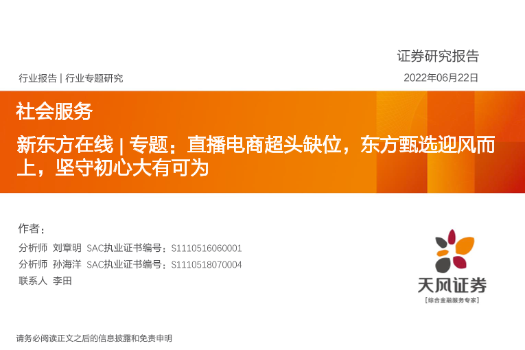 【天风证券】【20220622】社会服务行业新东方在线专题:直播电商超头缺位,东方甄选迎风而上,坚守初心大有可为-19页
