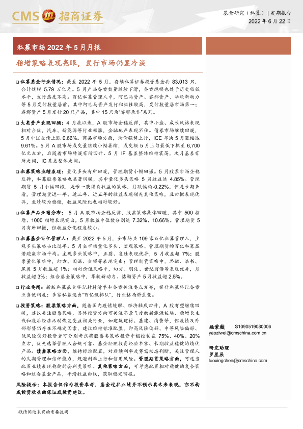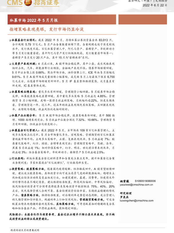 【海通证券】【20220622】私募市场2022年5月月报:指增策略表现亮眼,发行市场仍显冷淡-17页
