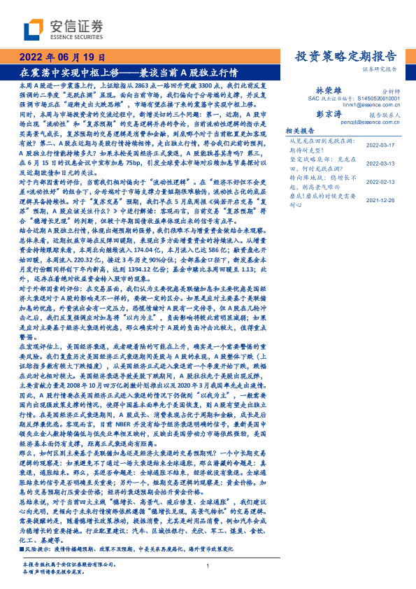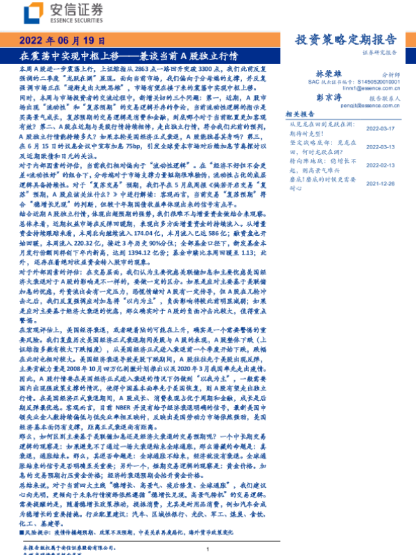 【安信证券】【20220619】投资策略定期报告兼谈当前A股独立行情:在震荡中实现中枢上移-34页