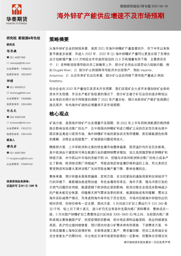 【华泰期货】【20220618】锌专题:海外锌矿产能供应增速不及市场预期-21页