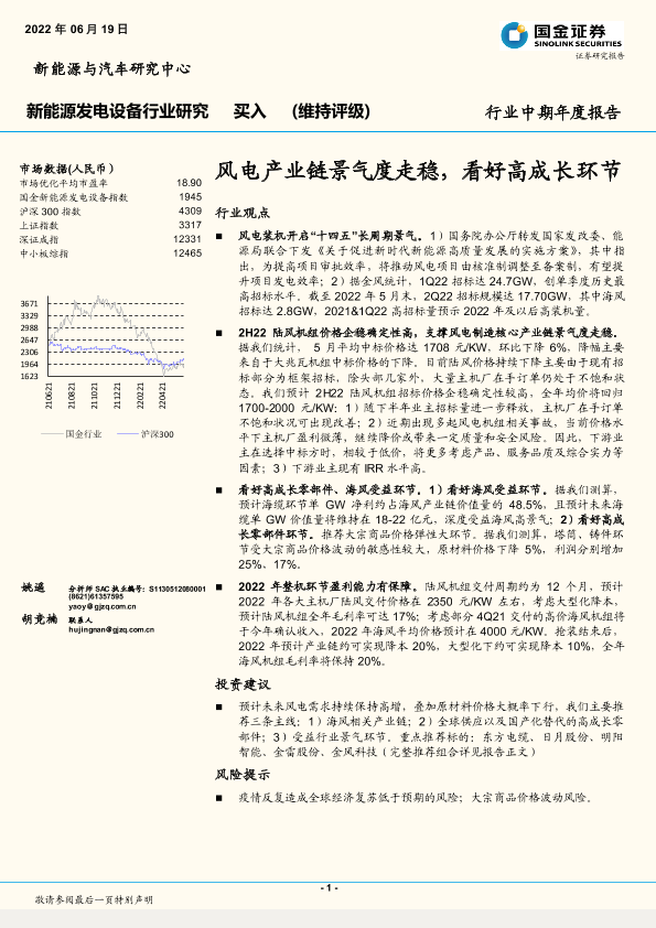 【国金证券】【20220619】新能源发电设备行业中期年度报告:风电产业链景气度走稳,看好高成长环节-21页