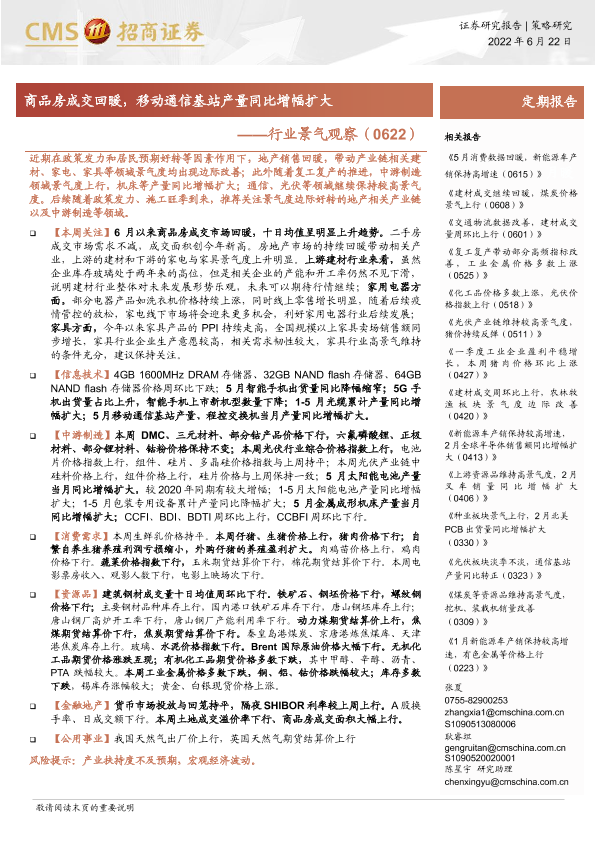【海通证券】【20220622】行业景气观察(0622):商品房成交回暖,移动通信基站产量同比增幅扩大-31页