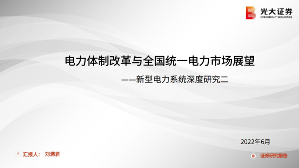【光大证券】【20220624】新型电力行业系统深度研究二:电力体制改革与全国统一电力市场展望-36页