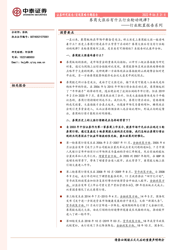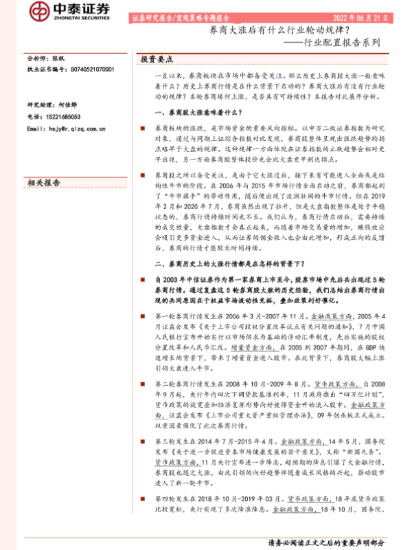 【中泰证券】【20220621】行业配置报告系列:券商大涨后有什么行业轮动规律?-17页