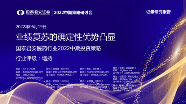 【国泰君安证券】【20220619】医药行业2022中期投资策略:业绩复苏的确定性优势凸显-42页