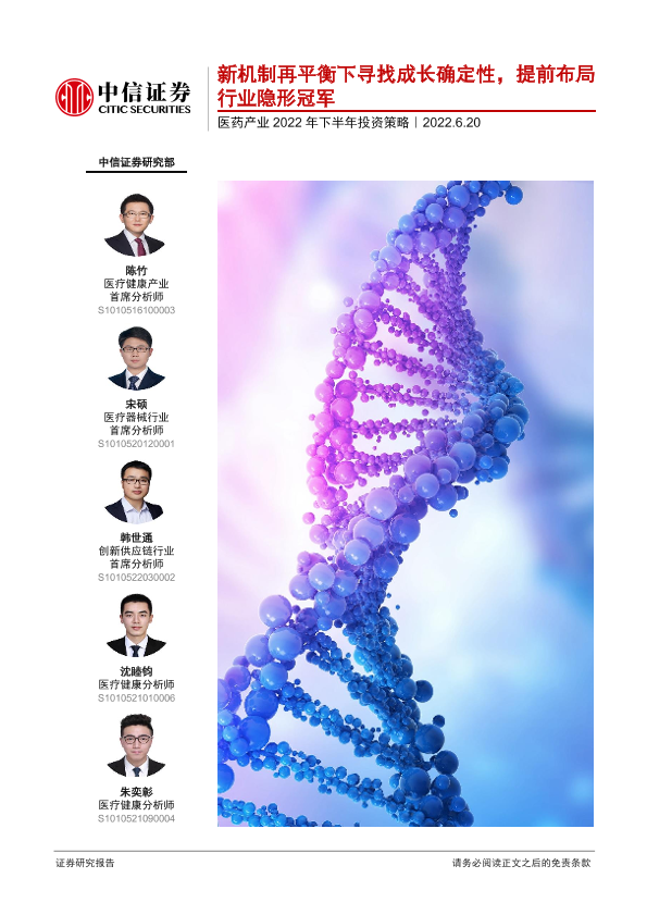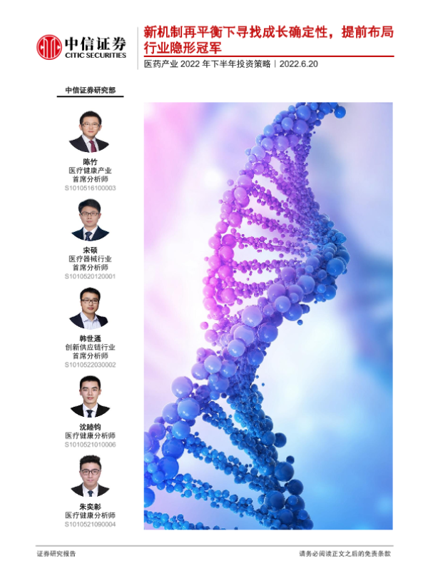 【中信证券】【20220620】医药行业产业2022年下半年投资策略:新机制再平衡下寻找成长确定性,提前布局行业隐形冠军-144页