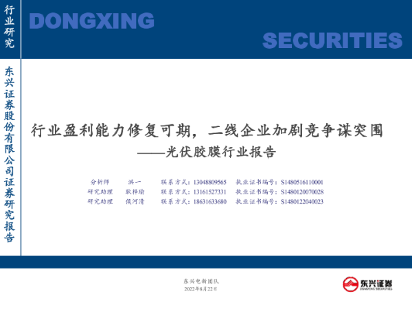 【东兴证券】【20220822】光伏胶膜行业报告:行业盈利能力修复可期,二线企业加剧竞争谋突围-24页