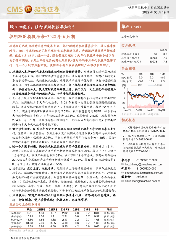 【海通证券】【20220619】银行业招明理财指数报告~2022年6月期:股市回暖下,银行理财收益率如何?-20页