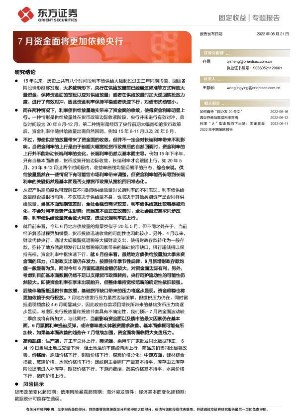 【东方证券】【20220621】专题报告:7月资金面将更加依赖央行-17页
