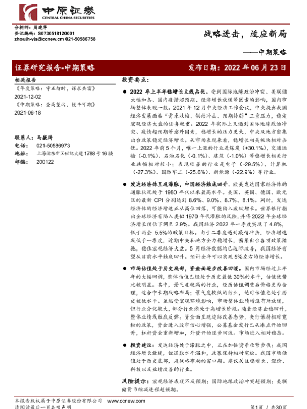 【中原证券】【20220623】中期策略:战略进击,适应新局-30页