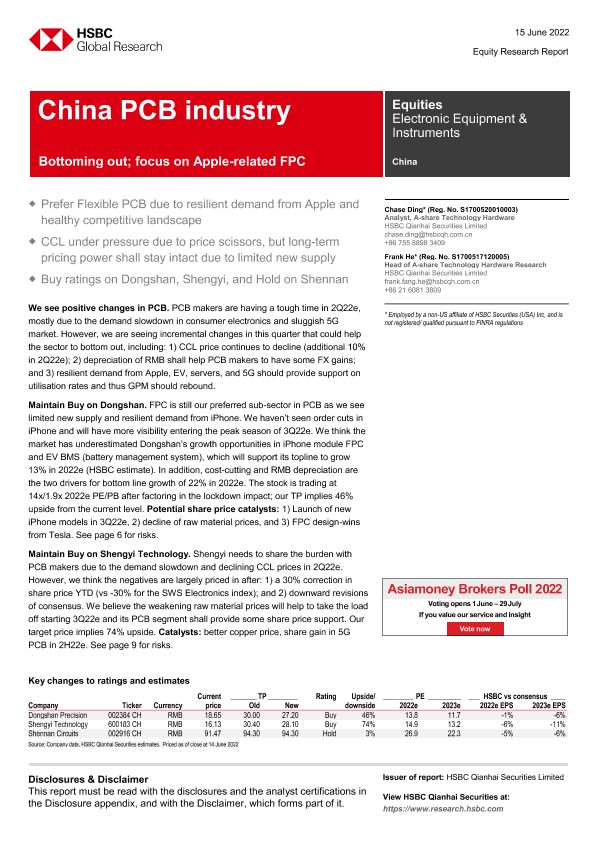 【HSBC Qianhai Securities Limited】【20220615】HSBC-中国PCB行业-触底反弹;关注苹果相关FPC-21页