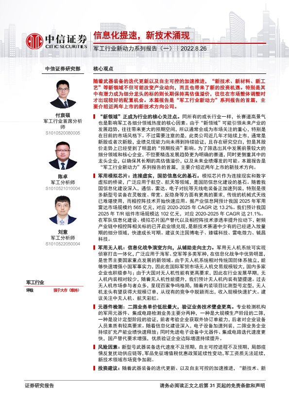 【中信证券】【20220826】军工行业新动力系列报告(一):信息化提速,新技术涌现-32页