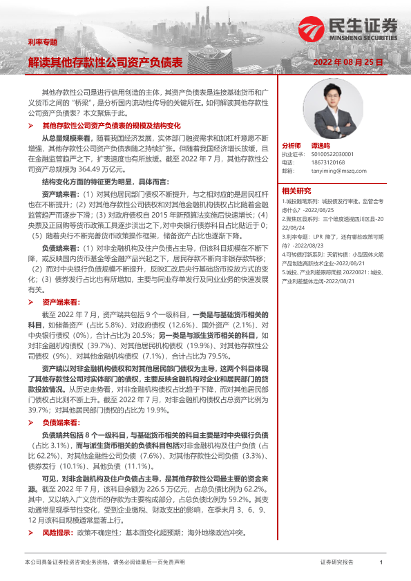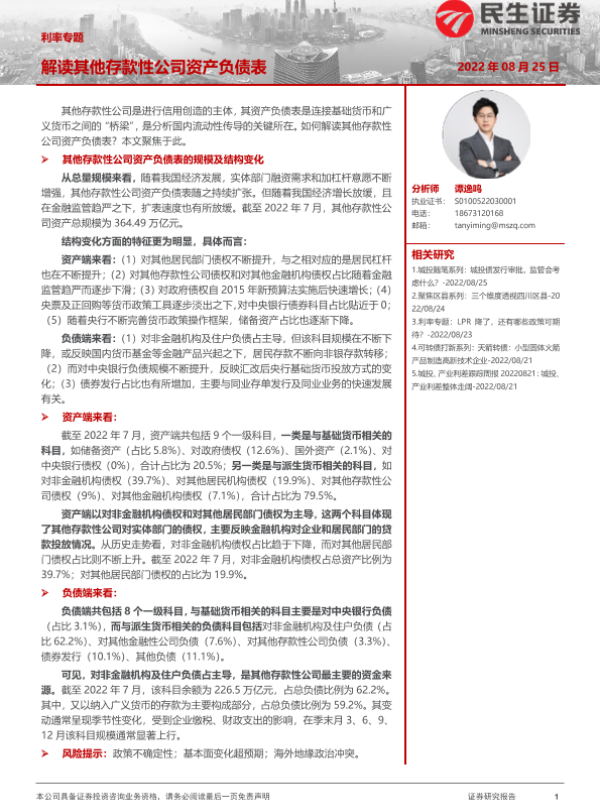 【民生证券】【20220825】利率专题:解读其他存款性公司资产负债表-24页