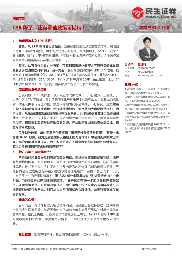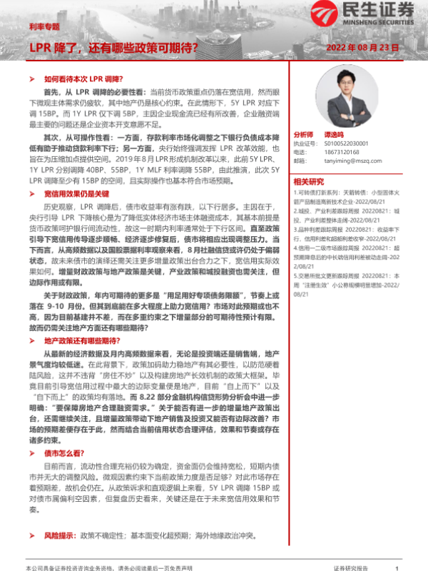 【民生证券】【20220823】利率专题:LPR降了,还有哪些政策可期待?-21页