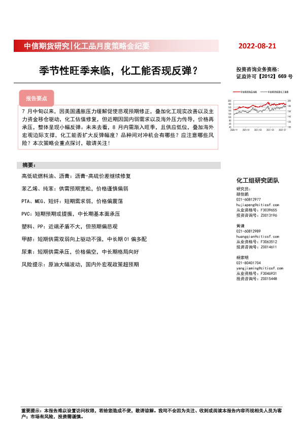 【中信期货】【20220821】化工品月度策略会纪要:季节性旺季来临,化工能否现反弹?-17页