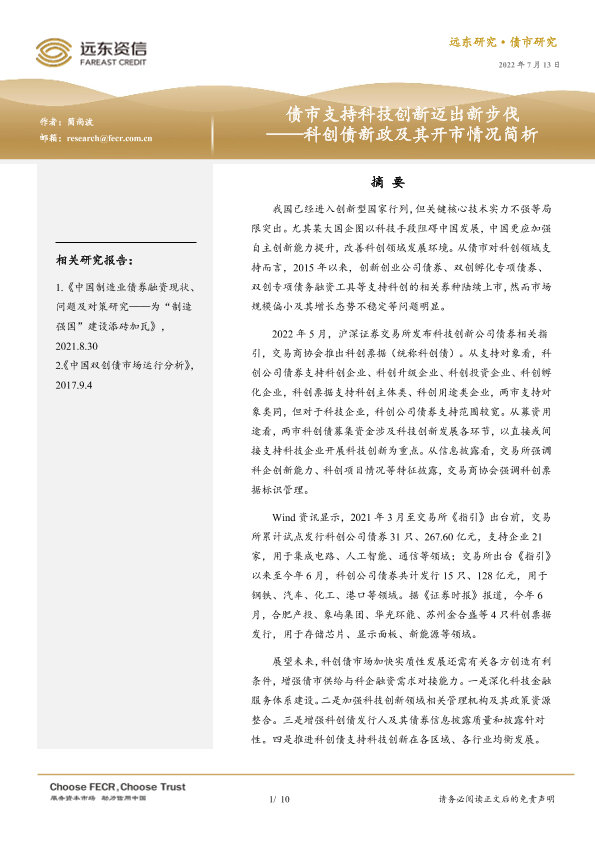 【远东资信】【20220713】债市支持科技创新迈出新步伐 ——科创债新政及其开市情况简析-10页
