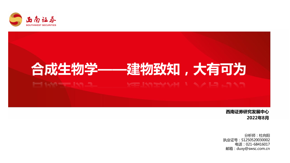 【西南证券】【20220824】医药生物行业:合成生物学,建物致知,大有可为-54页