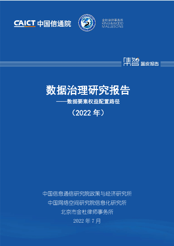2022 数据治理 数据要素 权益配置 研究报告