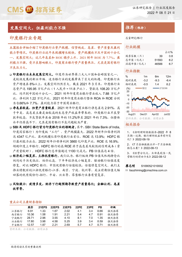 【海通证券】【20220821】印度银行业专题:发展空间大,但盈利能力不强-25页