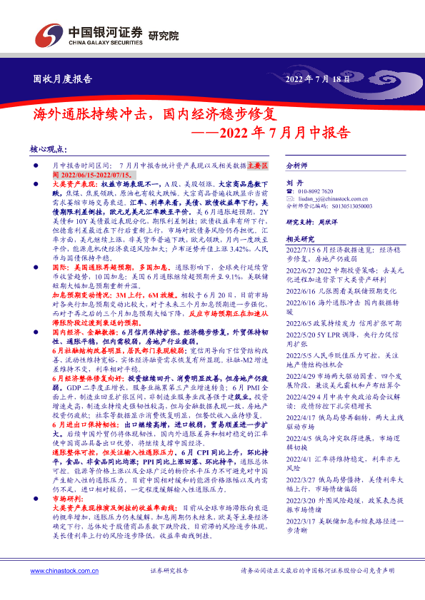 【银河证券】【20220718】2022年7月月中报告:海外通胀持续冲击,国内经济稳步修复-22页