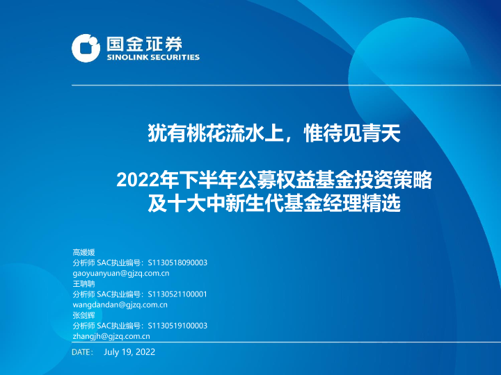 【国金证券】【20220719】2022年下半年公募权益基金投资策略及十大中新生代基金经理精选:犹有桃花流水上,惟待见青天-38页