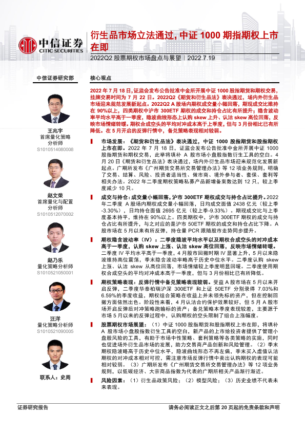 【中信证券】【20220719】2022Q2股票期权市场盘点与展望:衍生品市场立法通过,中证1000期指期权上市在即-21页