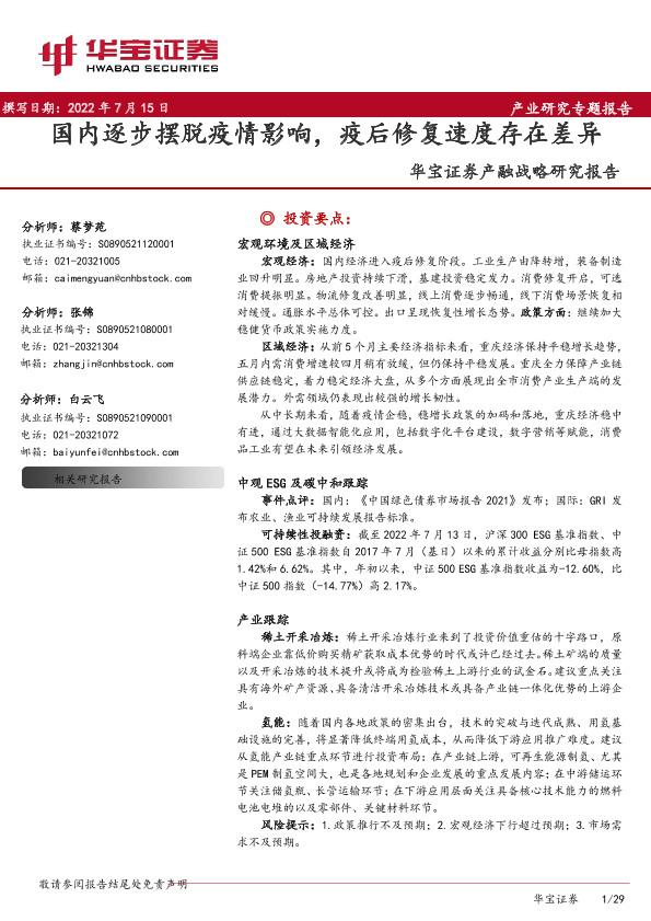 【华宝证券】【20220715】产融战略研究报告:国内逐步摆脱疫情影响,疫后修复速度存在差异-29页