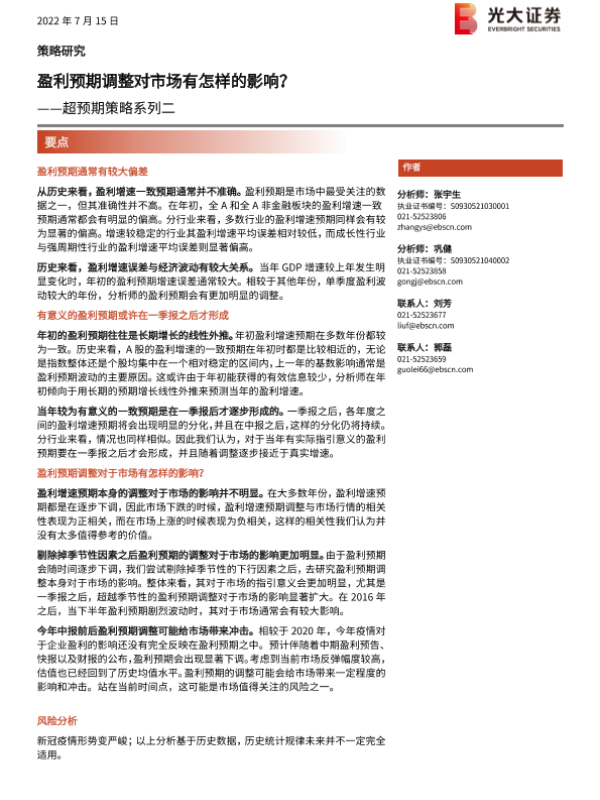 【光大证券】【20220715】超预期策略系列二:盈利预期调整对市场有怎样的影响?-25页