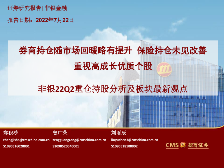【海通证券】【20220722】非银金融行业22Q2重仓持股分析及板块最新观点-15页