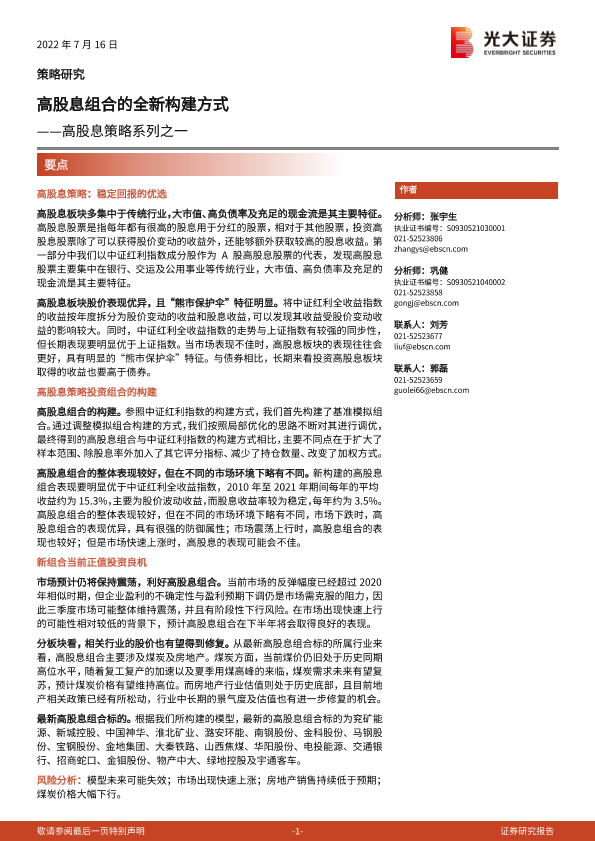 【光大证券】【20220716】高股息策略系列之一:高股息组合的全新构建方式-21页