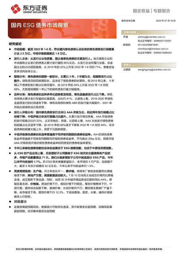 【东方证券】【20220718】固定收益专题报告:国内ESG债券市场观察-17页
