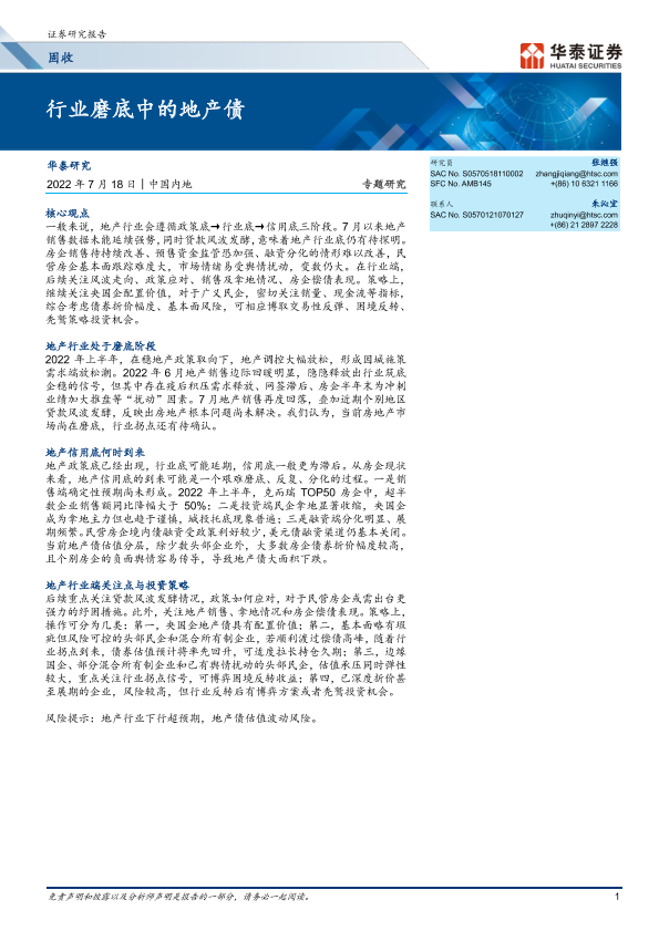 【华泰证券】【20220718】固收专题研究:行业磨底中的地产债-26页