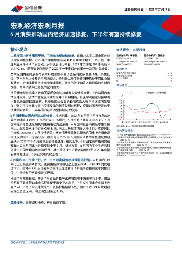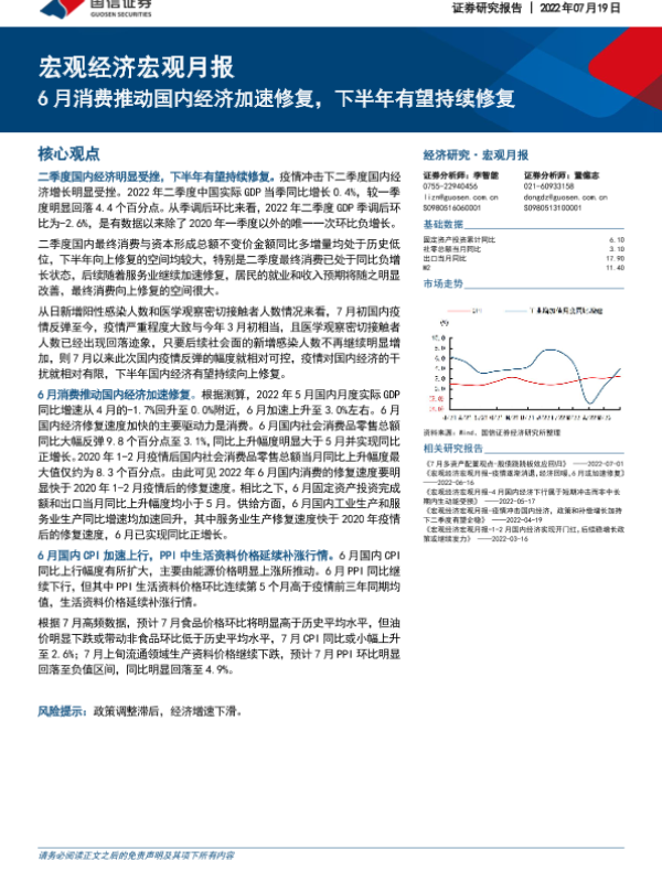 【国信证券】【20220719】宏观经济宏观月报:6月消费推动国内经济加速修复,下半年有望持续修复-27页