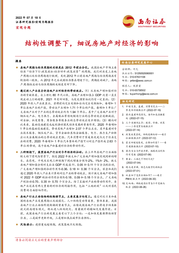 【西南证券】【20220718】宏观专题:结构性调整下,细说房地产对经济的影响-15页