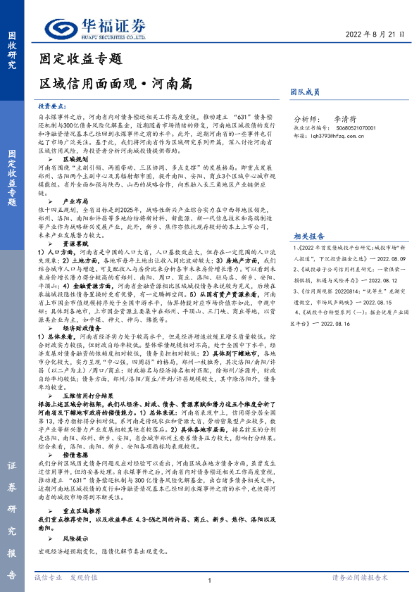 【华福证券】【20220821】固定收益专题:区域信用面面观·河南篇-28页
