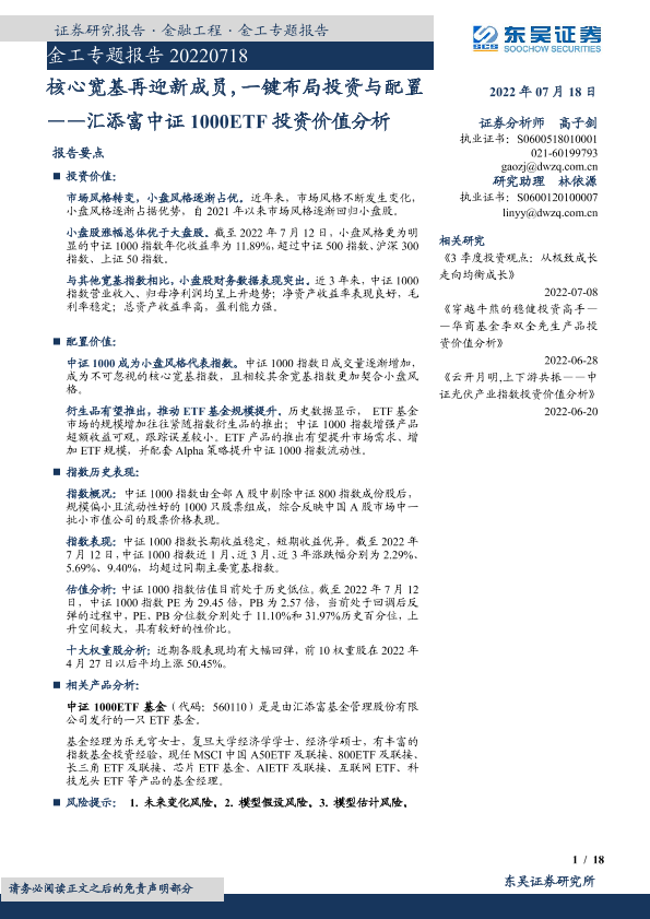 【东吴证券】【20220718】汇添富中证1000ETF投资价值分析:核心宽基再迎新成员,一键布局投资与配置-18页