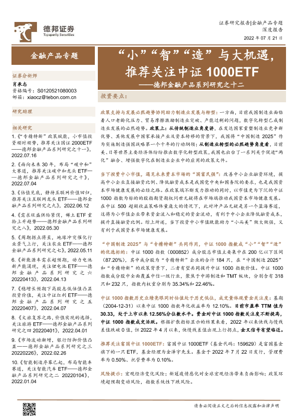 【德邦证券】【20220721】金融产品系列研究之十二:“小”“智”“造”与大机遇,推荐关注中证1000ETF-25页