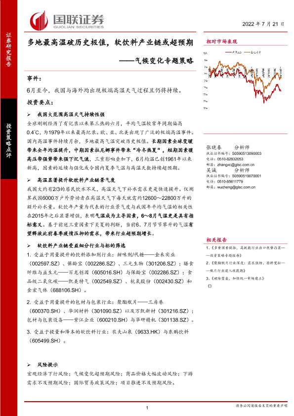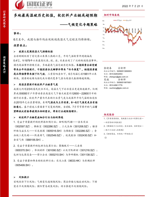 【国联证券】【20220721】气候变化专题策略:多地最高温破历史极值,软饮料产业链或超预期-15页