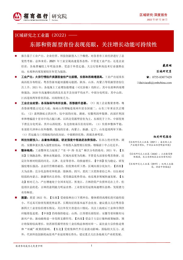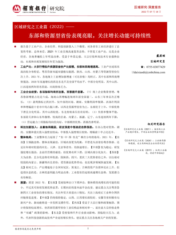 【招商银行】【20220718】区域研究之工业篇(2022)——东部和资源型省份表现亮眼,关注增长动能可持续性-21页