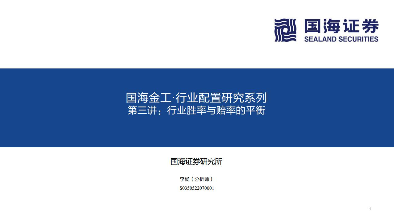 【国海证券】【20220826】国海金工·行业配置研究系列第三讲:行业胜率与赔率的平衡-31页