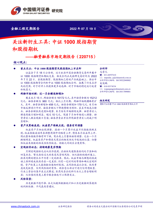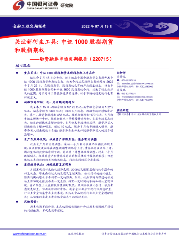 【银河证券】【20220719】融资融券市场定期报告:关注新衍生工具,中证1000股指期货和股指期权-23页