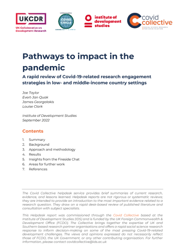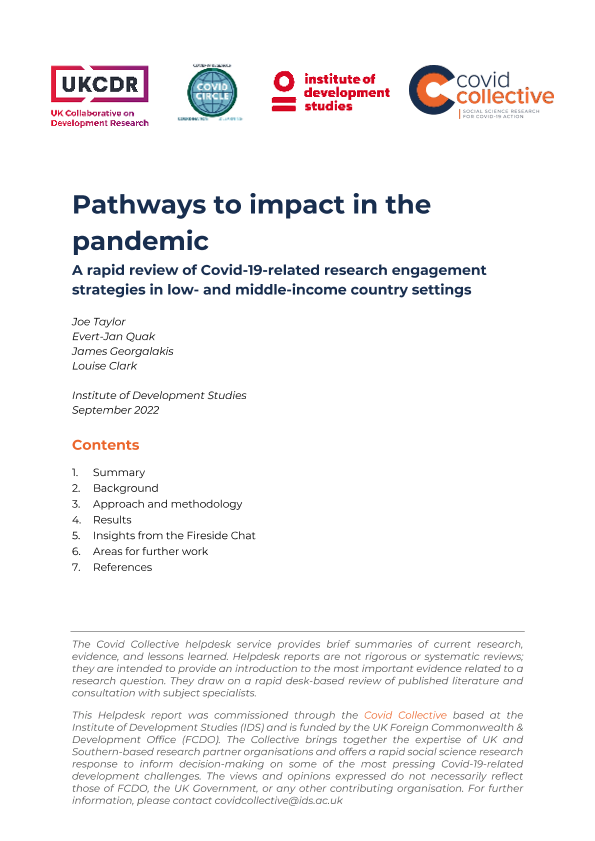 【英国发展研究所(Institute of Development Studies)】【202209】英国发展研究所-流行病影响途径-中低收入国家环境中与新冠疫情相关的研究参与战略快-23页