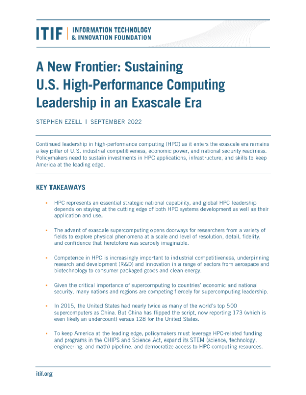 【ITIF】【202209】一个新的前沿:在Exascale时代保持美国高性能计算的领先地位-44页