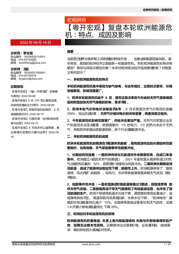 【粤开证券】【20220918】复盘本轮欧洲能源危机:特点、成因及影响-20页